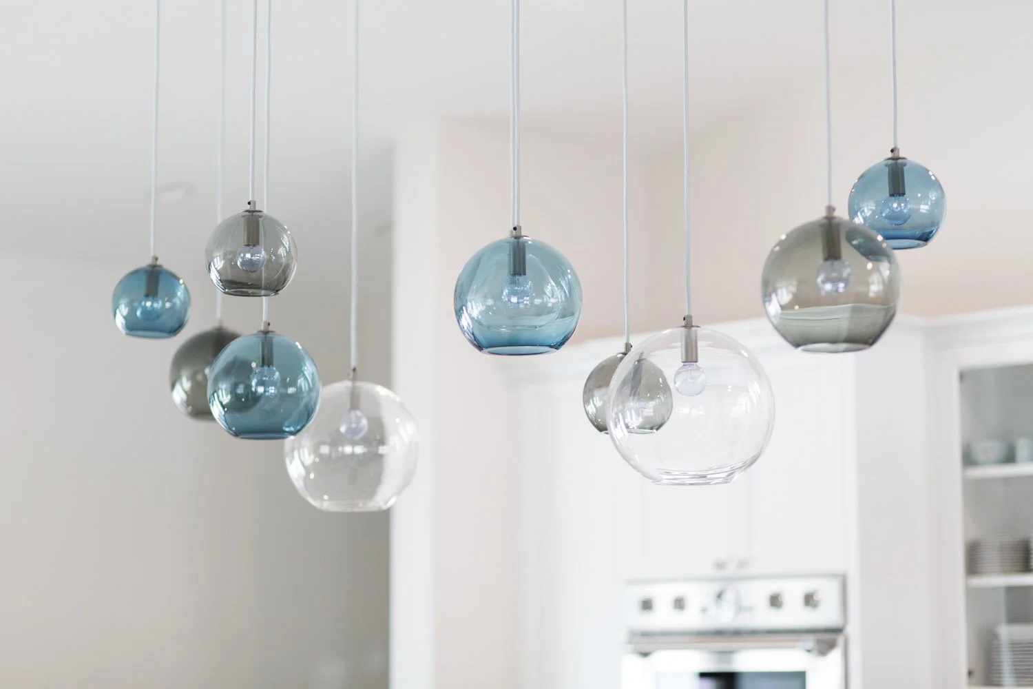 In this remarkable transformation, we've reimagined every corner of the home, infusing it with a sense of sophistication and style. The color palette, featuring crisp whites, soothing grays, warm neutrals, and hints of blue, sets the stage for a harmonious blend of coastal serenity and transitional allure. Our custom-designed handblown glass light fixtures steal the spotlight in the open and chef-friendly kitchen, adding a touch of artistry and elegance to the space. But perhaps the crown jewel of our Santa Ynez project is our most fan loved bathroom to date, where we spared no expense in creating a spa-like oasis. With two custom vanities, a separate makeup vanity, infrared sauna, large walk-in shower, and freestanding soaking tub, this space epitomizes luxury and comfort.